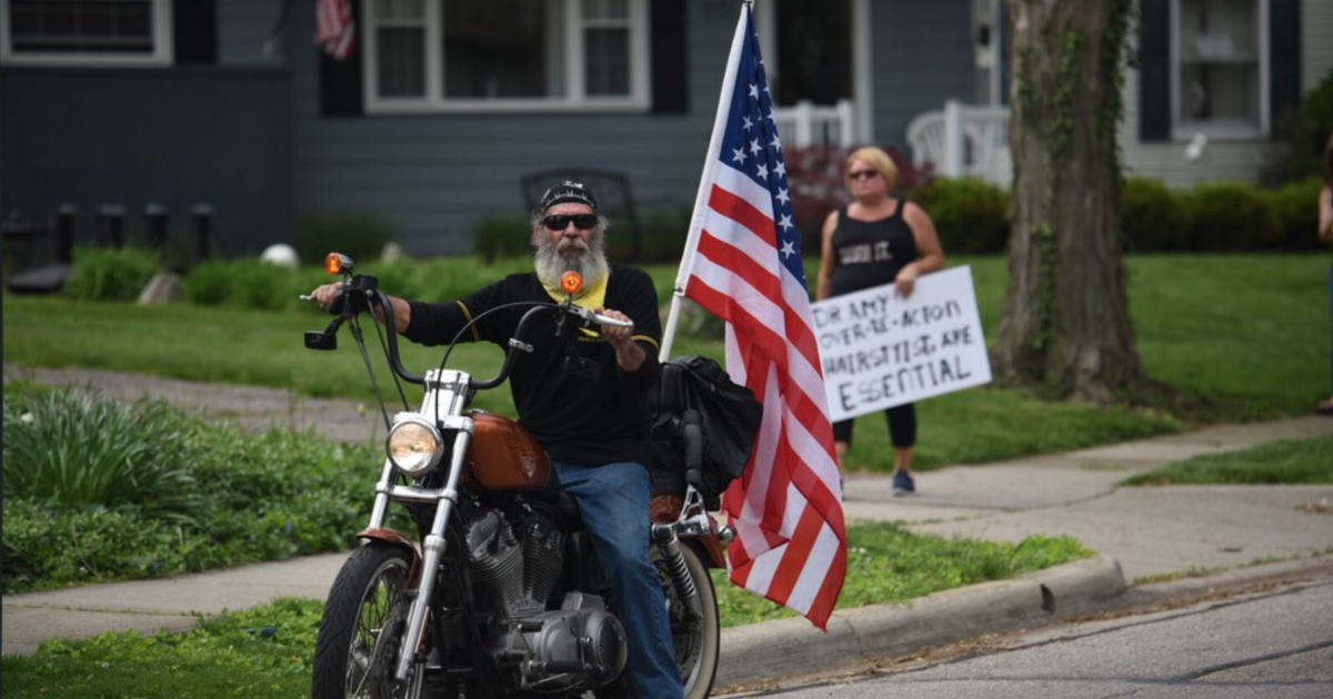 KRForbesPhotography, a freelance photographer, captured images of the protesters holding signs, one of which read “Dr. Amy Over-Re-Acton Hairstylists Are Essential” and another that read “Let Freedom Work.”