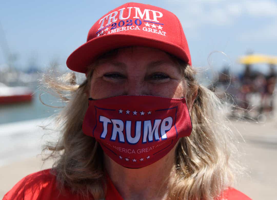 With her red Trump-themed mask, Mary Delany smiled for the camera as she posed in front of the Selena Memorial statue in downtown Corpus Christi, Texas, on Saturday.