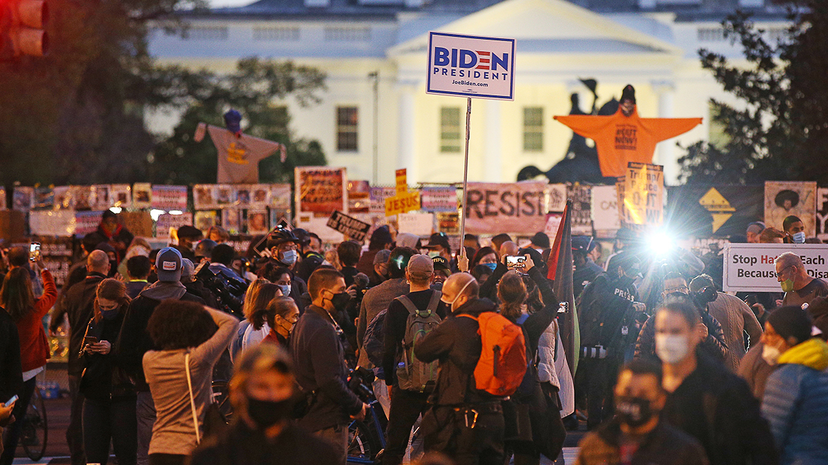- Hundreds of people are demonstrating near the White House Tuesday night as they wait to find out who will be the next president of the United States