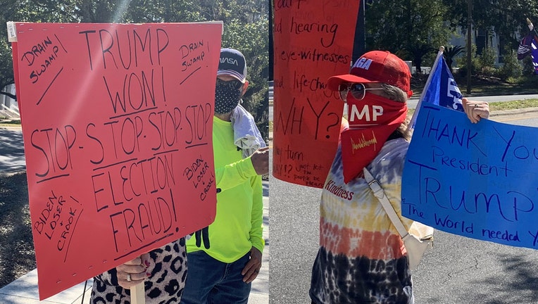 TALLAHASSEE, Fla. - A small group of protesters gathered at the Florida Capitol in Tallahassee as Joe Biden was sworn-in as the 46th President of the United States of America.