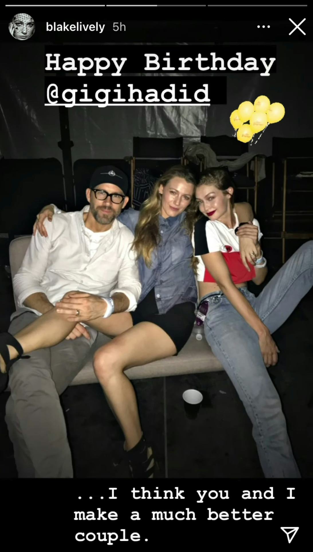 Blake Lively Faux-Shades Ryan Reynolds For Gigi Hadid's Birthday Post - Bustle